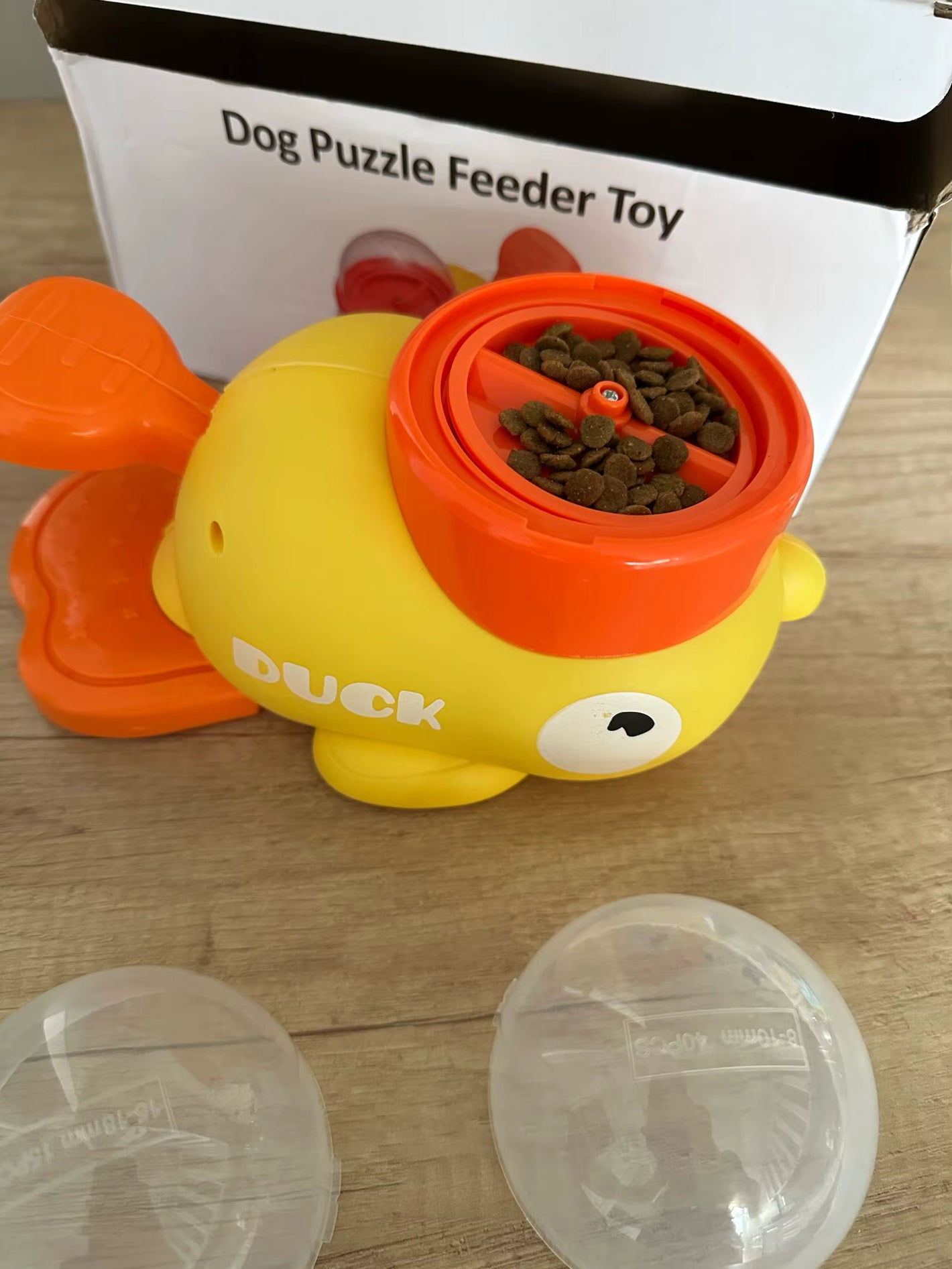 Siempre que dejaba a mi perro solo se aburría y hacía destrozos. Con este dispensador en forma de pato juega, se entretiene y además come más lento. Es divertido verlo empujarlo por toda la casa.